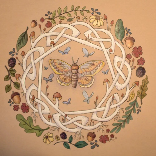 7”x8.5”, Colored pencil and ink on glitter paper, acrylic paint on recycled frame